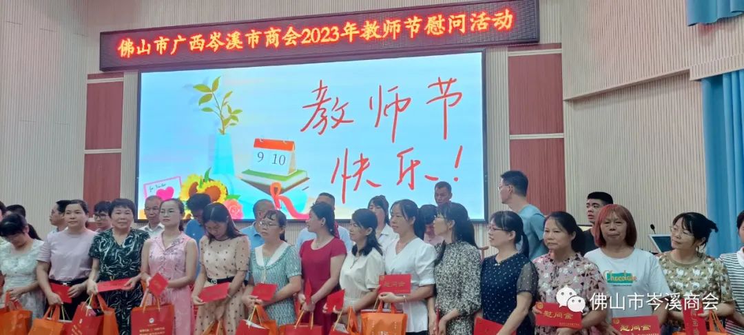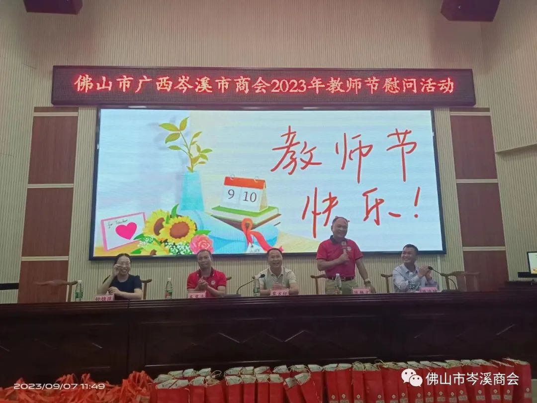 9月7日,市工商联联合佛山市广西岑溪市商会开展2023年教师节慰问活动,并为辛勤耕耘在教育战线的“园丁”们送上节日祝福。
