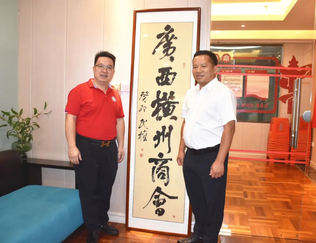 执行会长苏民权与横州市高级中学书记黄锦军在商会办公室合影