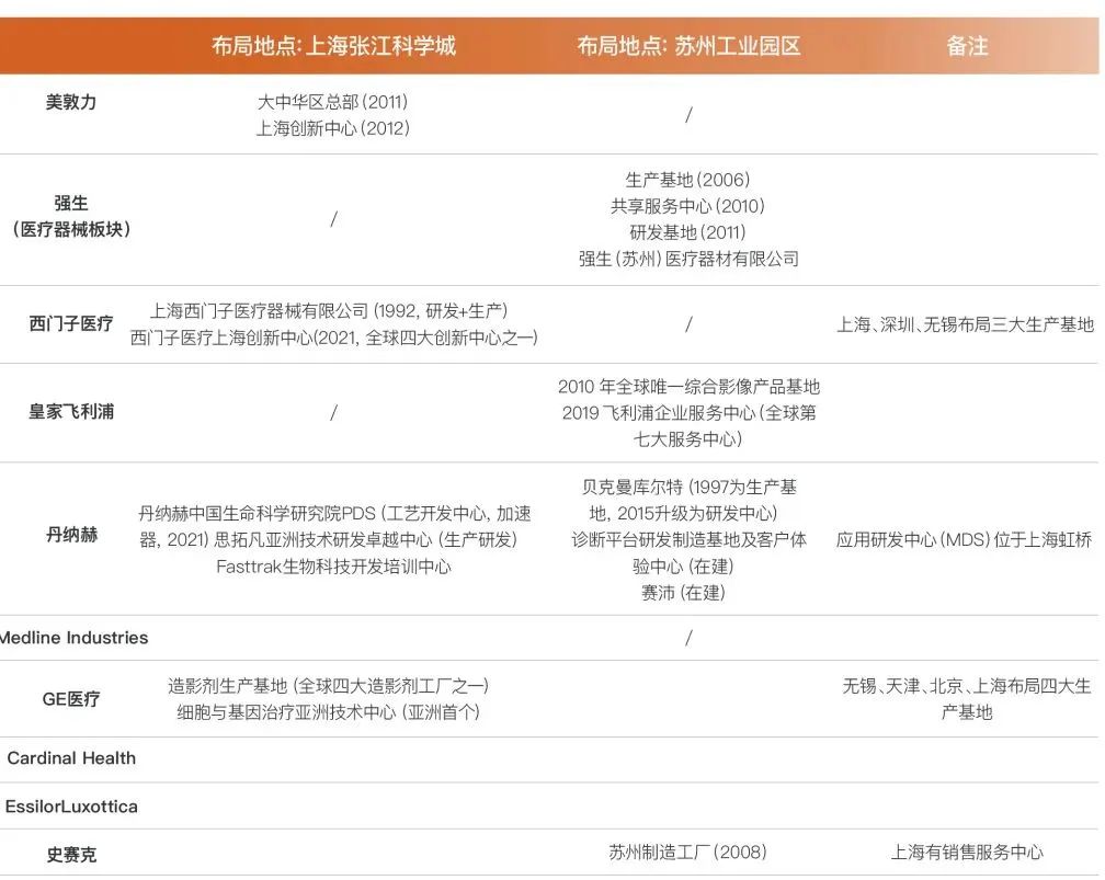 表:十大药械企业在张江科学城和苏州工业园区的布局