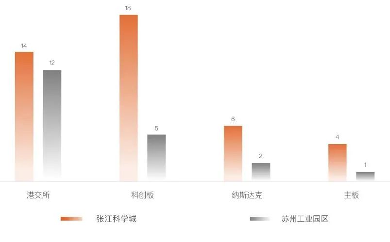 图:张江科学城和苏州工业园区上市企业的上市地点