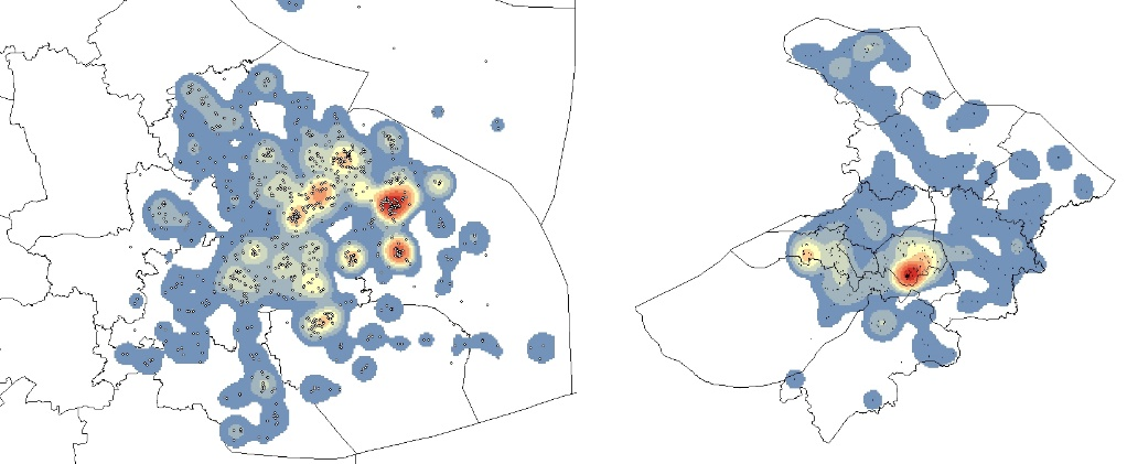 我们将两大城市的生命科学赛道的高新技术企业做了一个简单的热力图分析。相较于苏州,上海生命科学产业显示出了“多点开花”的空间格局:张江无疑是相关企业集聚度最高的片区,但闵行的临港浦江城、中心城区如徐汇区等也成为了优质企业集聚青睐的地点,甚至近郊如松江、宝山等也形成了相关企业的集聚连绵带。