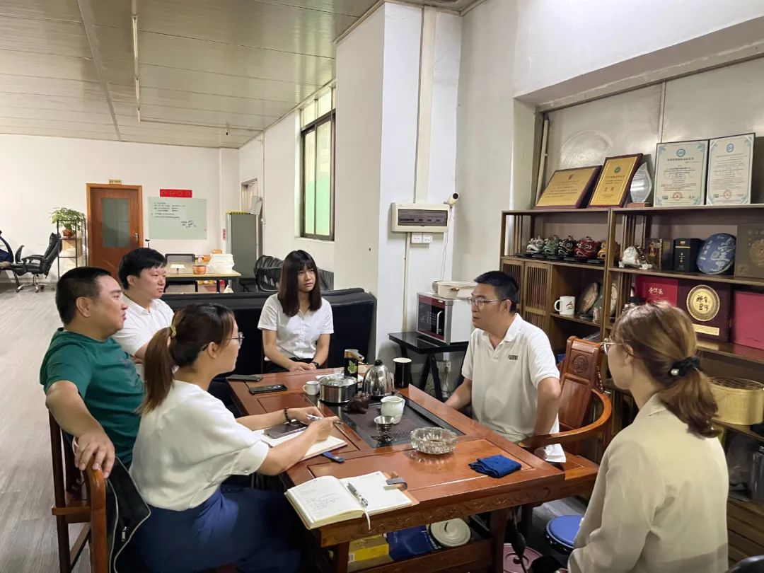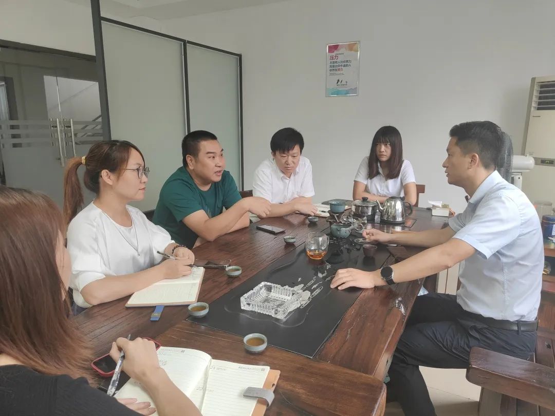 交流中,晋盈电器总经理马耀航向走访组介绍企业目前生产经营状况,并探讨制造电饭煲内胆行业的趋势及当今经营环境。常务副秘书长吴海珊向马总介绍商会七大平台服务内容,并表示近期会积极走访会员企业,收集并向有关部门反映企业发展诉求,为企业提供更优质的服务,让企业能安心发展。