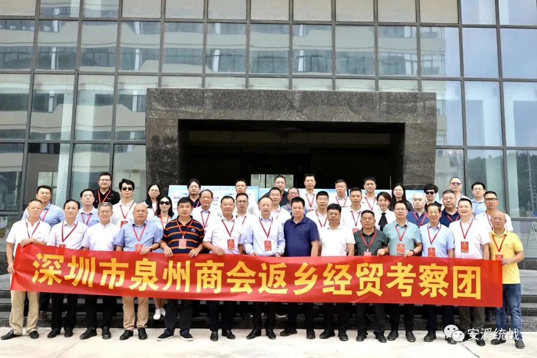 9月13日,深圳市泉州商会返乡经贸考察团到安溪开展经贸考察活动。县人大常委会主任梁金良,县委副书记叶睿葆,县委常委、统战部部长肖印章,副县长谢建新,泉州市工商联、泉州市驻深办等单位领导陪同。