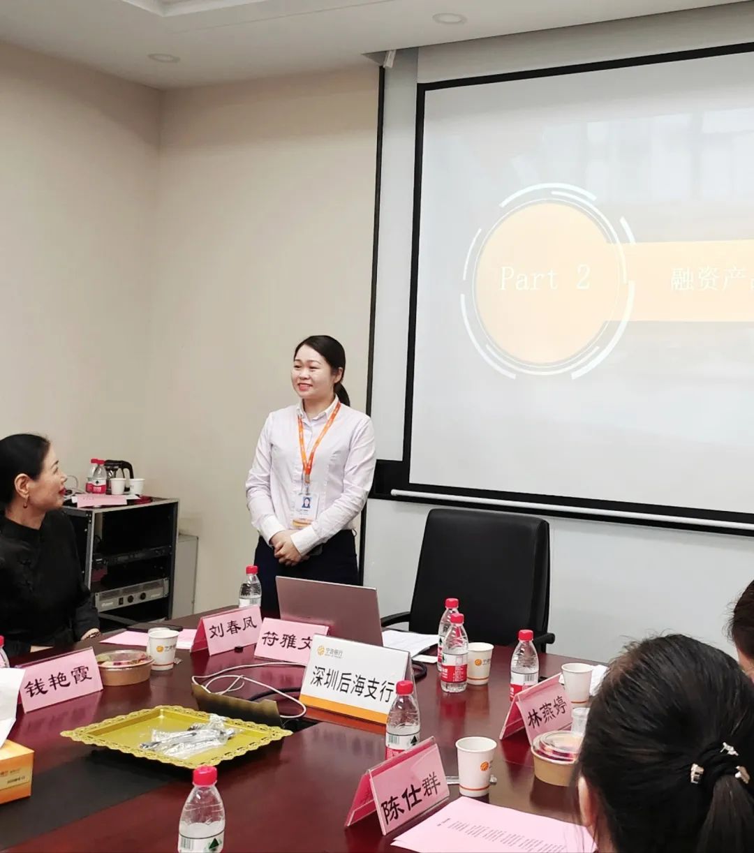 许少丹主席对我会理事、宁波银行后海支行黎泽娜副行长的热情接待表示衷心的感谢,同时特别感谢宁波银行后海支行为今天的活动提供舒适的场地。
