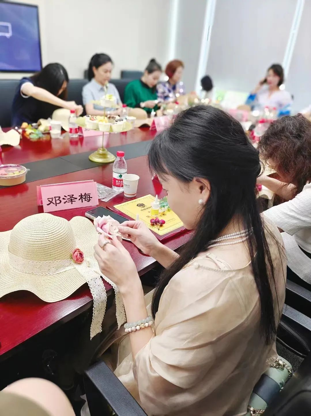打造学习型组织是巾帼潮商会的发展理念,花艺代表女性的柔美和优雅,银行代表财富和物质。今天的活动是一场精神和物质齐飞的盛宴,大家以花艺草帽制作为契机,彼此交流、彼此相知,希望大家能够在未来的生活和事业发展中建立情谊,找到合作的伙伴。