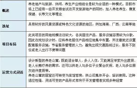 根据清华大学建筑学院周燕珉教授的观点,目前国内养老地产开发共分为五大类,15种模式。