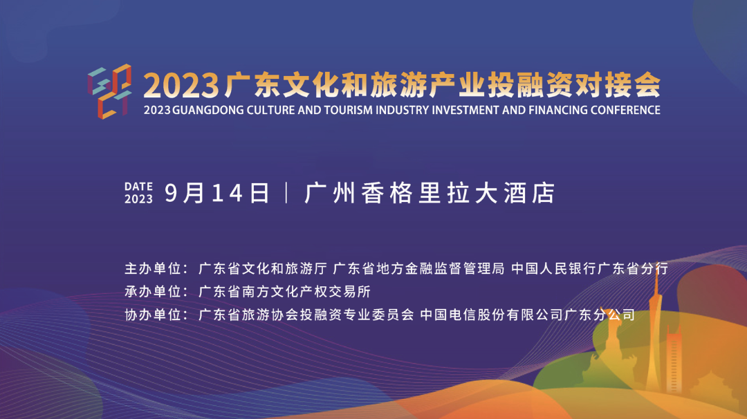 9月13-14日,由广东省文化和旅游厅、广东省地方金融监督管理局、中国人民银行广东省分行联合主办,广东省南方文化产权交易所承办,广东省旅游协会投融资专业委员会、中国电信股份有限公司广东分公司协办的