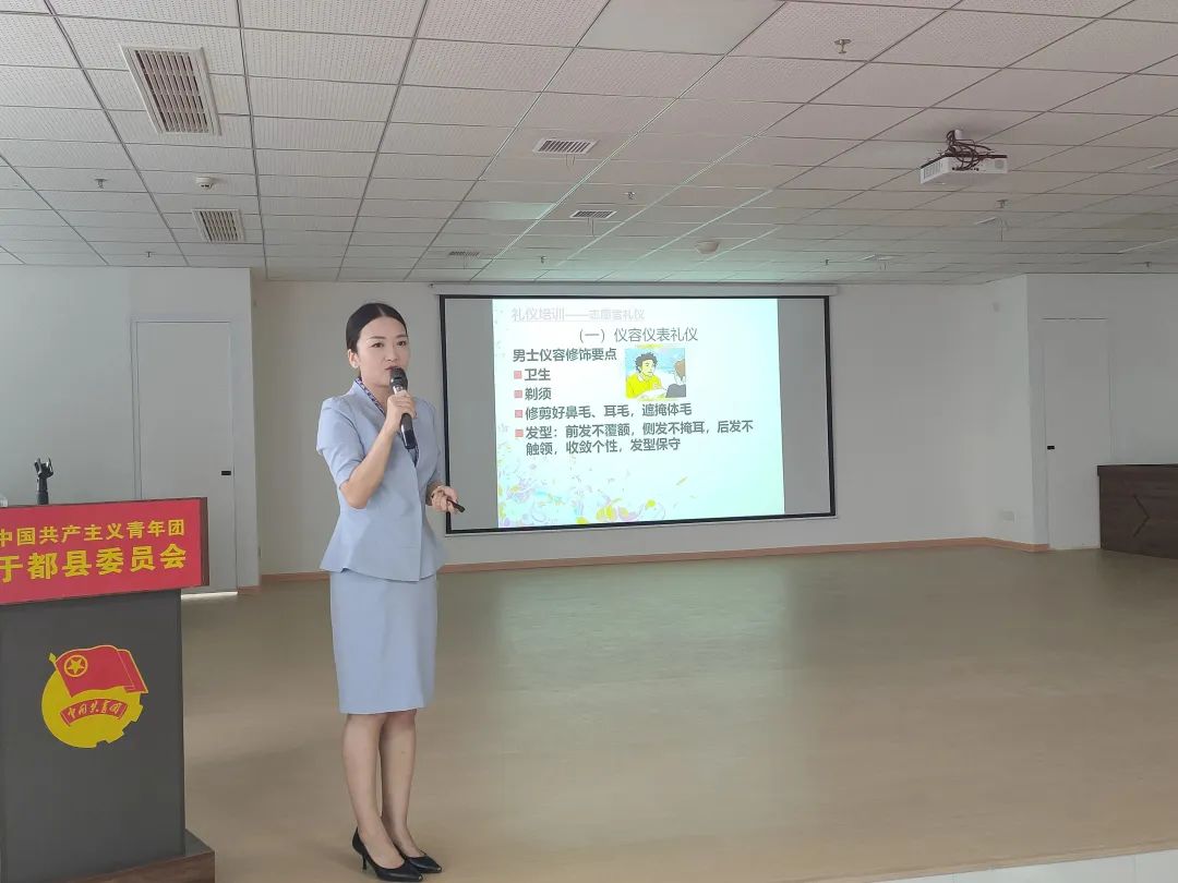 县接待办干部谢晶同志向志愿者们作了志愿者社交礼仪专题培训。