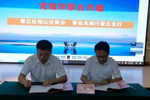 相公庄商会党组织与青岛农商行章丘支行党组织签订党建共建协议。