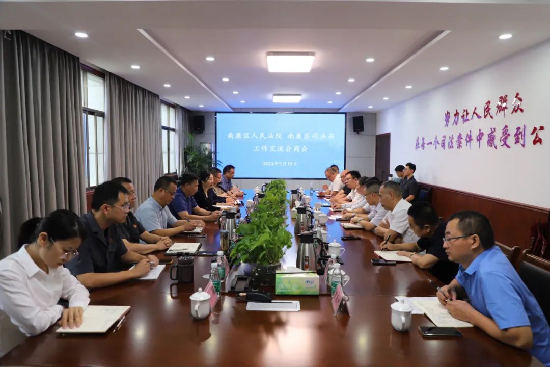 9月15日上午,区法院、区司法局召开工作交流会商会,深入践行习近平法治思想,探索建立法院、司法局工作交流会商机制,聚焦工作中的重点难点问题,有效凝聚工作合力,更好地服务于法治南康、平安南康建设。区法院党组书记、院长温金来,区司法局党组书记、局长江香莲出席会议并讲话。区法院相关院领导、区司法局分管领导、相关股室负责人,南康区内各律师事务所、基层法律服务所主任或代表参加会议。
