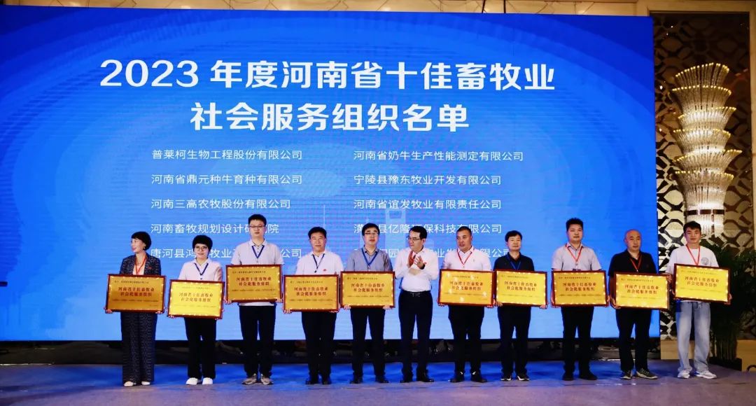 在本次大会上,鼎元公司获得了大会颁发的2023年度河南省畜牧业最佳科技创新奖、河南省十佳畜牧业社会化服务组织两项大奖。