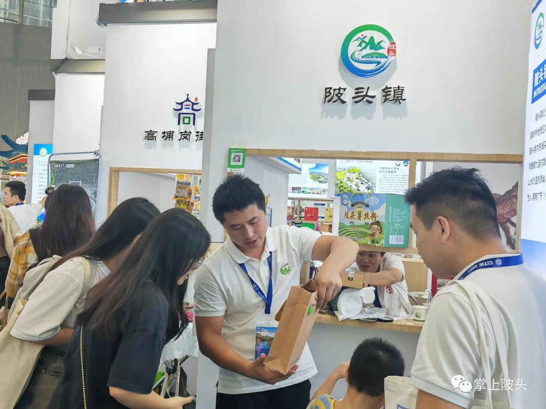 本届旅博会中,陂头镇精心策划,紧贴文旅融合发展理念,积极组织镇属强村公司参与,帮助陂头企业拓展业务、打响企业品牌。同时,参展企业带来的展品进一步促进陂头文旅宣传推广,多元化展示陂头文旅形象。在现场可以看到,陂头镇参展人员热情地为大家介绍陂头的农特产品,并在现场煮米粉、泡雪菊,邀请大家一起品尝。