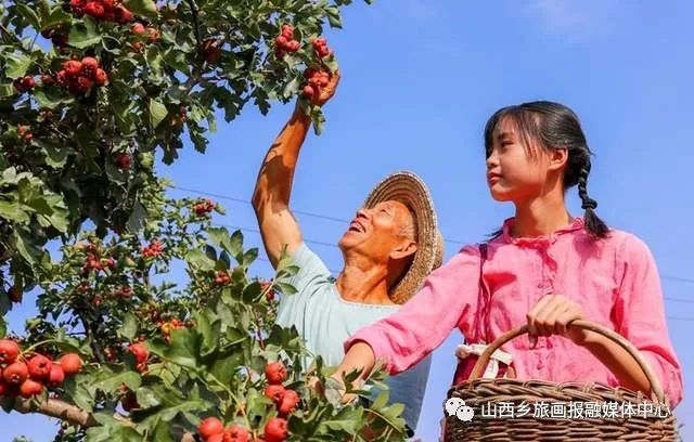 9月16日,闻喜县郭家庄镇七里坡村村民正在采摘山楂,丰收的喜悦溢于言表。