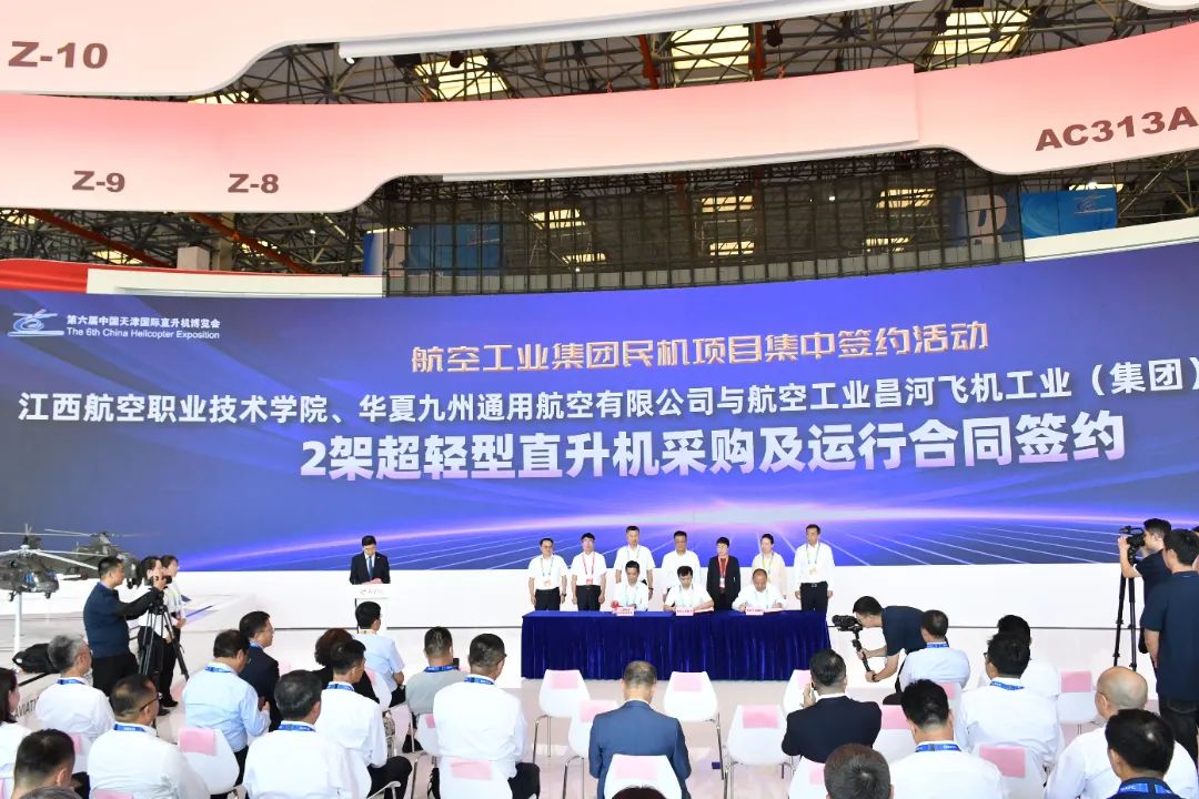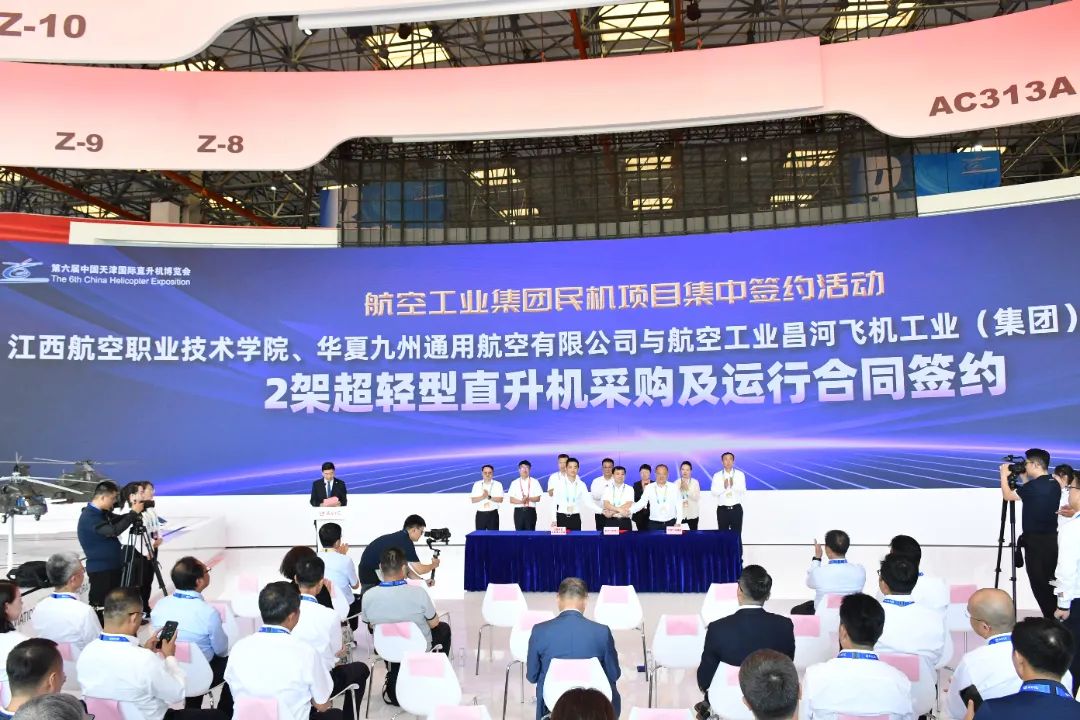 9月14日,第六届中国天津国际直升机博览会在天津空港经济区盛大开幕。在当日举办的航空工业集团民机项目集中签约活动中,江西航空职业技术学院、华夏九州通用航空有限公司、航空工业昌河飞机工业(集团)有限公司共同签署2架超轻型直升机采购及运行合同。工业和信息化部装备工业二司副司长王文军,中国民用航空适航审定中心副主任李博,航空工业党组成员、副总经理何胜强,航空工业昌飞公司副总经理谢晓文,江西航空职业技术学院党委书记、督导专员潘莹璐等领导见证签约。校长助理万春鹏代表校方签约。