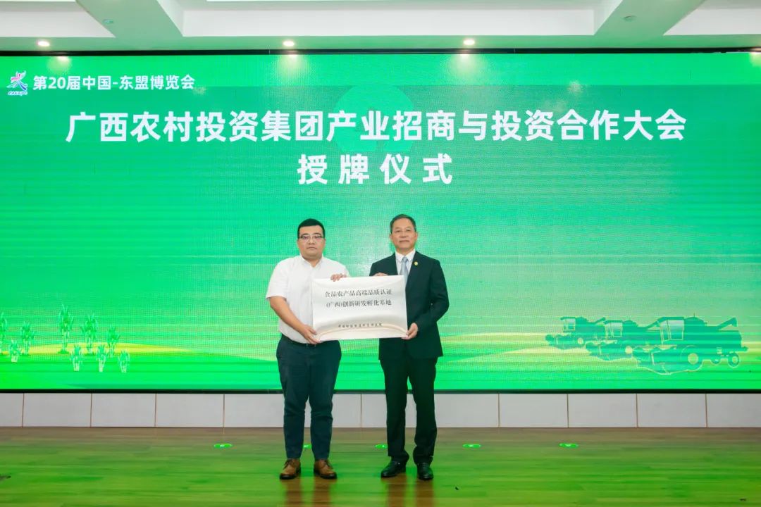 本次大会作为第20届中国—东盟博览会的重要配套活动,签订特色农业投资合作项目13个。同时还举行了“食品农产品高端品质认证(广西)创新研发孵化基地”授牌仪式。