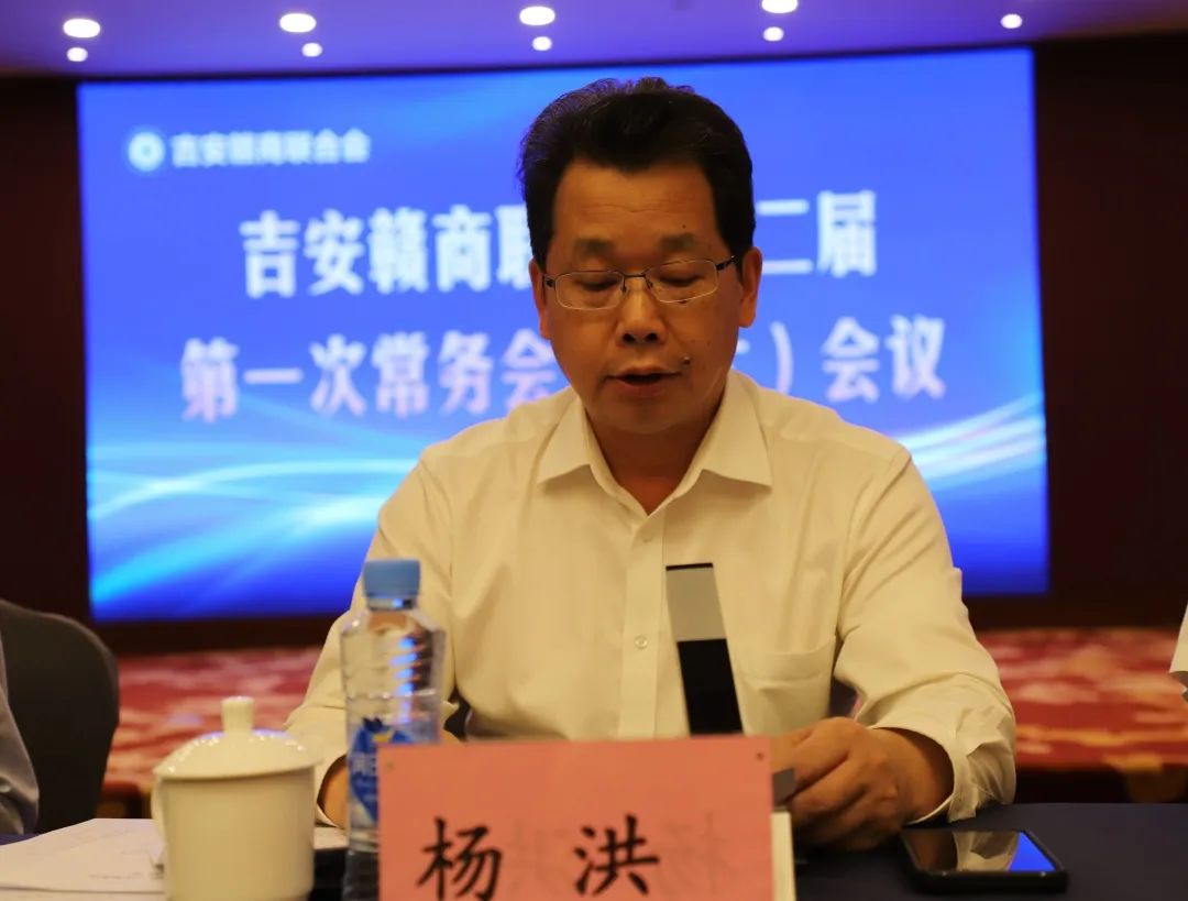 吉安赣商联合会会长杨洪作《吉安赣商联合会2023年上半年工作总结和下半年工作安排》的报告。他说,上半年,我们圆满完成换届工作,在推进返乡兴业、服务会员企业、加强自身建设、坚持党建引领等方面亮点纷呈。下半年,吉安赣商联合会将持续发力返乡兴业、积极开展商会活动、创新商会服务体系、加强商会自身建设、扎实高效开展党建工作等。
