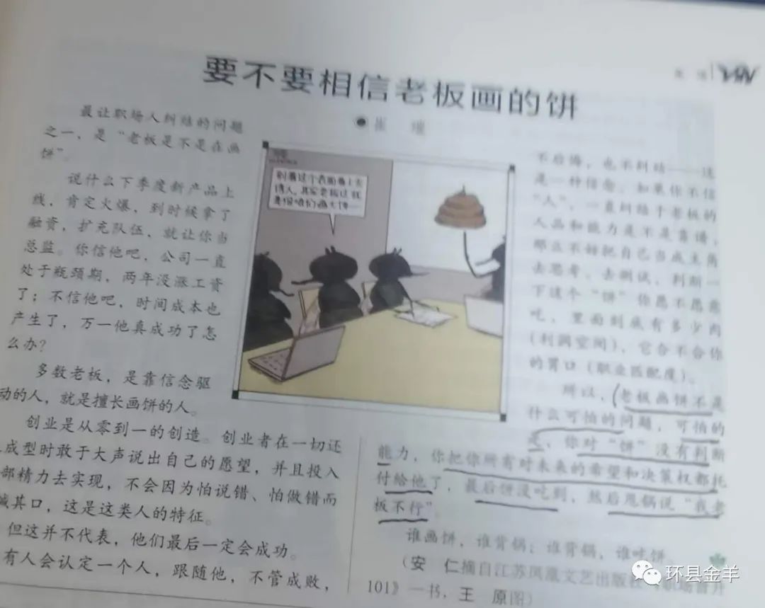 2023年第7《读者》中,有这样一篇《要不要相信老板画的饼》,文中最后说: