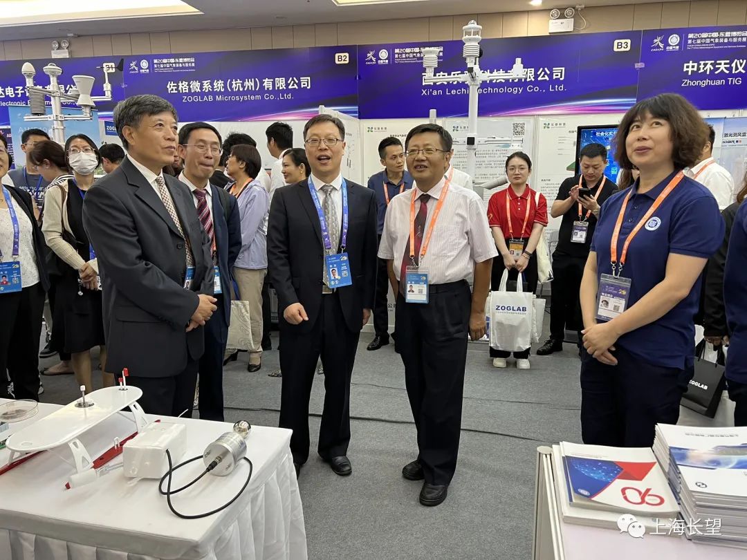 开幕式结束后,中国气象局张祖强副局长一行参观长望科技、气象仪器厂展台。了解了长望科技及气象仪器厂的历史,对半潜式气象无人艇、微智能气象站表现出浓厚兴趣。