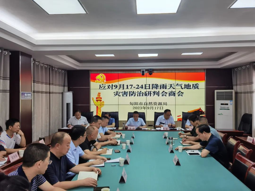 根据气象部门预报,旬阳市9月17日至24日为多雨时段,过程累计降雨量70~120毫米。为进一步抓好本轮降雨地质灾害防范工作,9月17日,市自然资源局迅速召开地质灾害防治会商会。会议由局党组书记、局长黄涛主持,局党组成员、副科以上干部、局相关各股室和事业单位负责人参加了会议。
