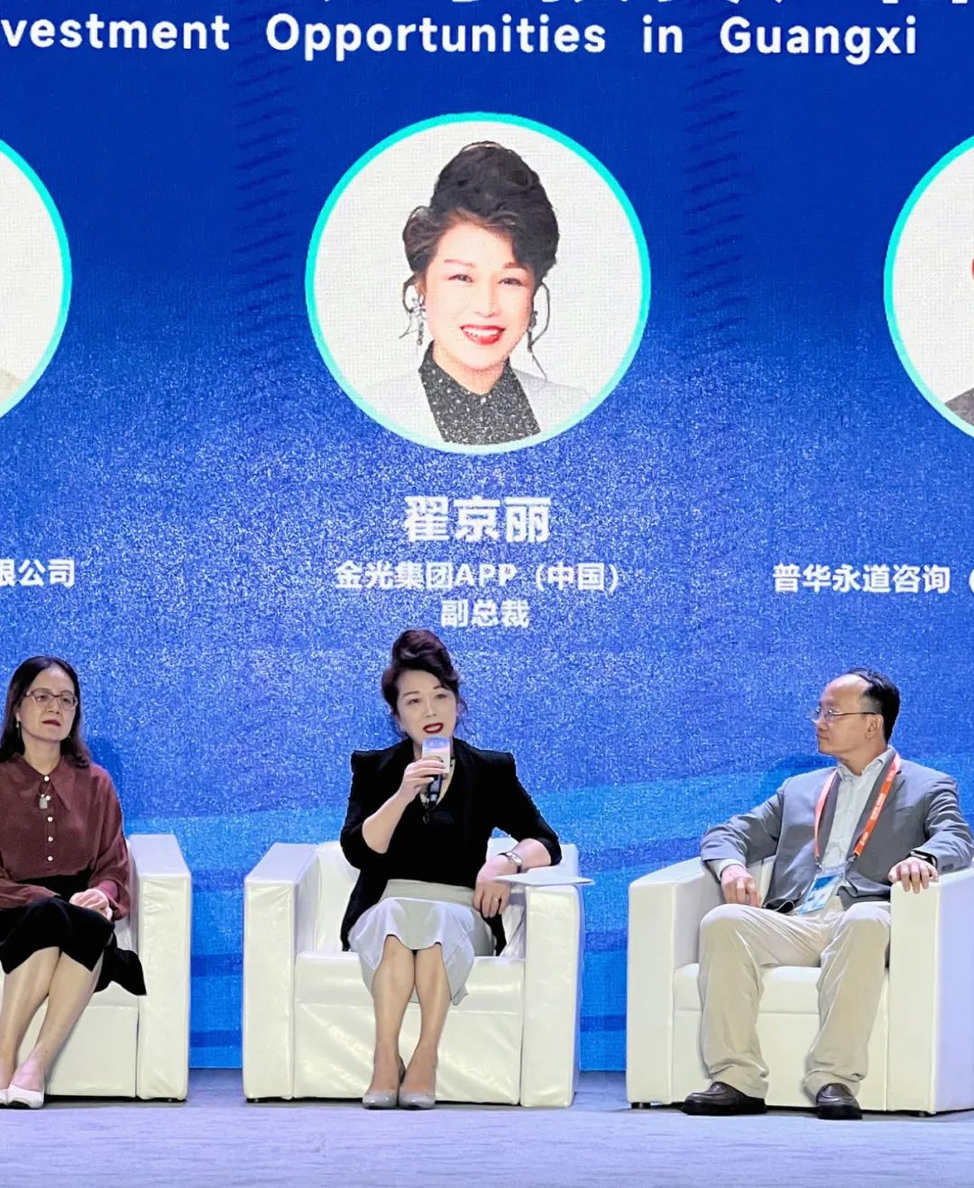 16日,由中国商务部、广西壮族自治区人民政府举办的“投资中国年—走进广西”专场活动在广西南宁市举行。在“东盟国家企业分享投资广西机遇”圆桌对话环节,包括金光集团APP(中国)副总裁翟京丽在内的五位企业家着眼国内外发展大势,紧扣广西发展前景,分享投资广西发展机遇。