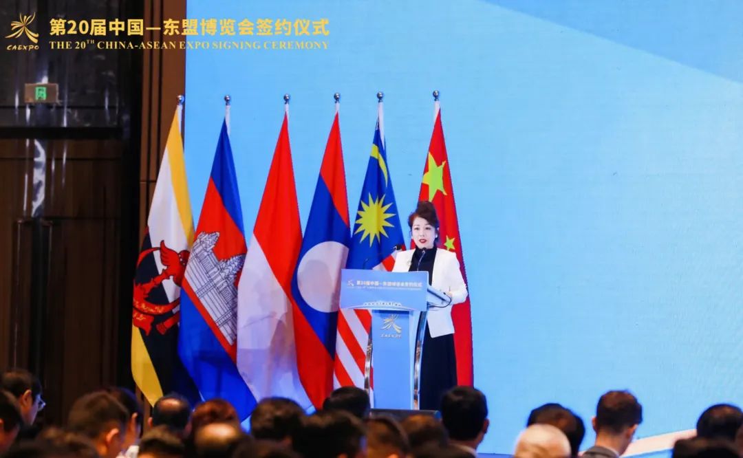 在第20届东盟会期间,APP(中国)副总裁翟京丽还莅临由中国—东盟博览会组委会主办,广西壮族自治区人民政府承办的项目签约仪式并做现场致辞。APP(中国)大纸事业部CEO王乐祥、广西金桂浆纸业有限公司总经理徐友君、APP(中国)大纸事业部副总经理孙炳健共同出席此次活动。