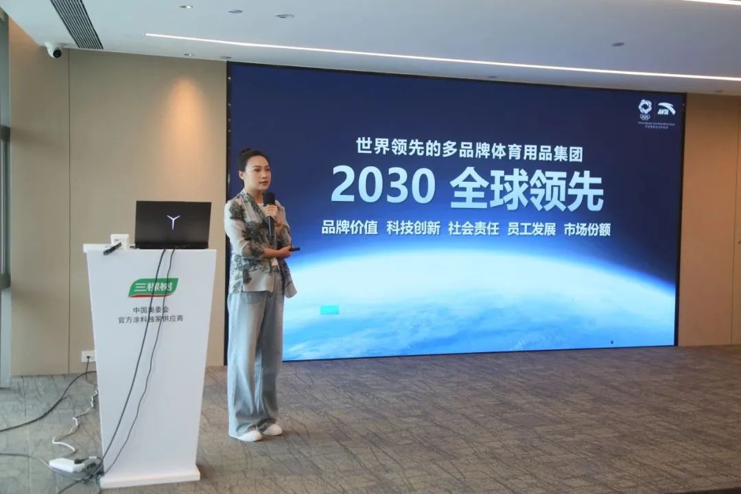 安踏集团集团事务部总监肖楠作《超越自我、永不止步》讲座交流,分享安踏品牌的发展情况及经验模式。