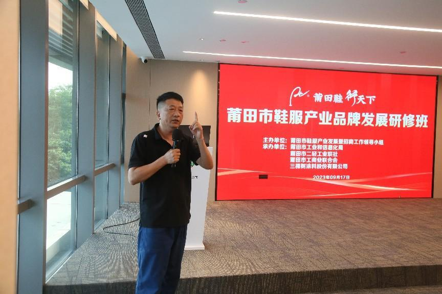 市工商联主席、三棵树涂料股份有限公司董事长洪杰作《三棵树品牌文化发展经验分享》讲座交流,分享三棵树文化引领高质量发展、三棵树品牌发展历程及规划、对莆田鞋服行业未来发展的建议,启迪鞋服企业从“文化、品牌、创新、营销”四轮驱动做大做强做优鞋服产业链。