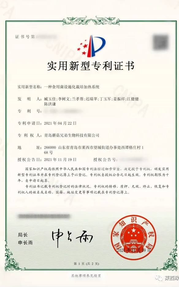 近年来,莱西市深挖食用菌产业潜能,积极构建食用菌全环节提升、全链条增值、全产业融合的发展新格局。全市食用菌年产量2万余吨,总产值约3.5亿元,入选国家食用菌产业技术体系科技示范基地。