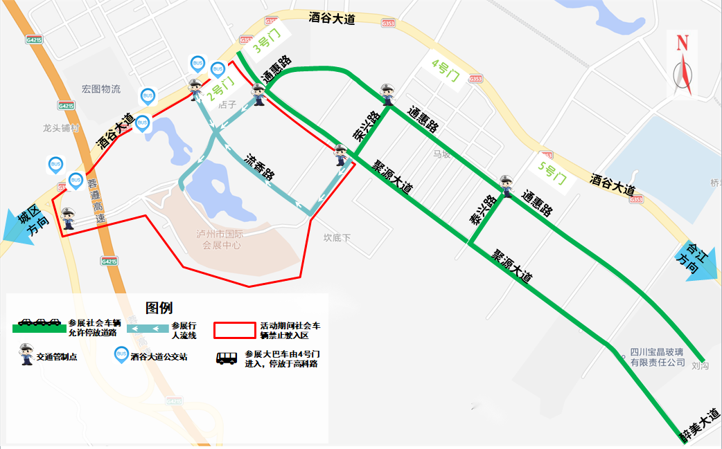 第二届中外地理标志产品博览会将于9月19日开幕,9月18日起,泸州国际展会中心将举办各项活动。届时,酒谷大道沿线、长江二桥及连接线、泰安长江大桥、临港大道、国窖大桥沿线、大山坪沿线、蜀泸大道沿线车流量增多,请市民朋友选择公交出行/错峰出行,避免造成道路拥堵。
