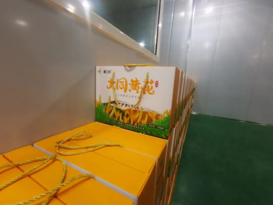 在大同黄花产业园,工人正在流水线式的将黄花产品装盒,并进行物流运输。为解决黄花菜保鲜难度大、加工产品少、附加值低等难题,现已开发出黄花酒、黄花煲仔饭、黄花酱、忘忧菌菇汤包、黄花饼等种类丰富的黄花深加工产品,满足消费者的多种需求。