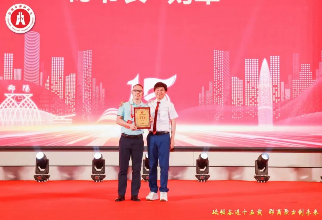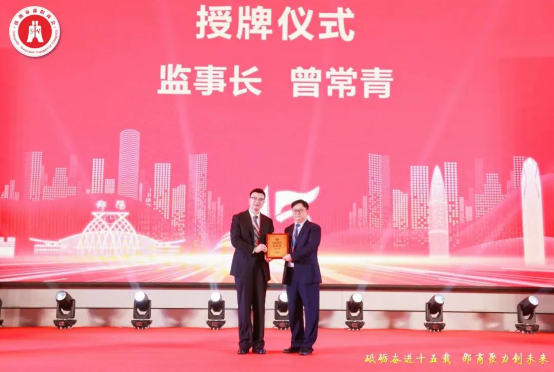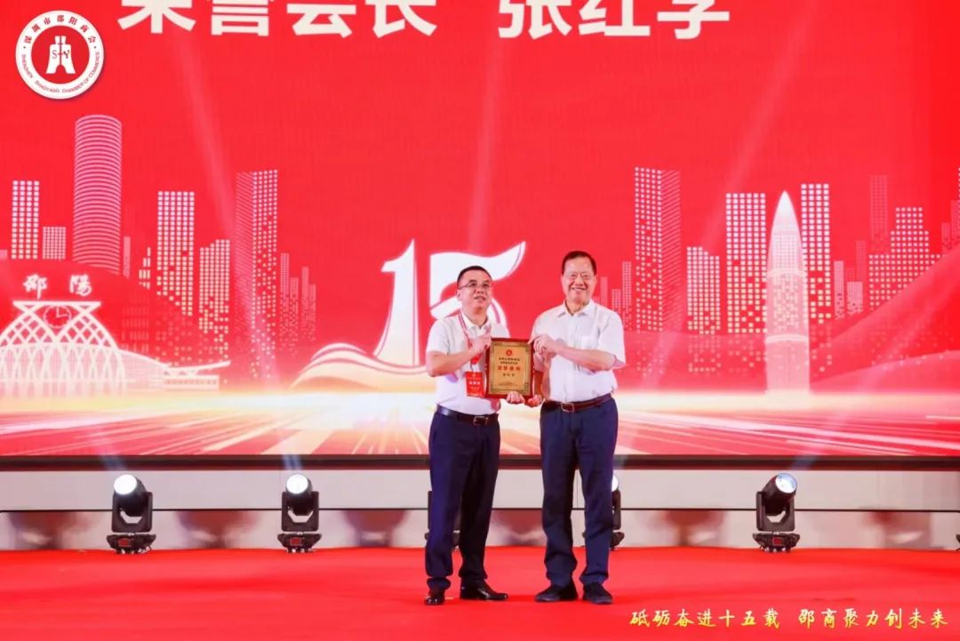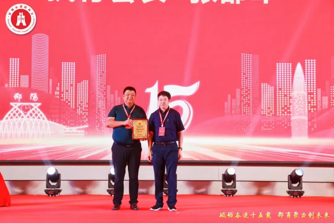 邵阳市政府李荣卫副秘书长给曾常青监事长颁牌