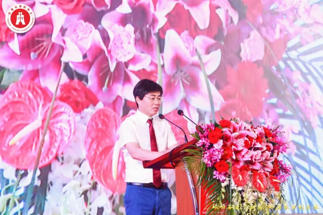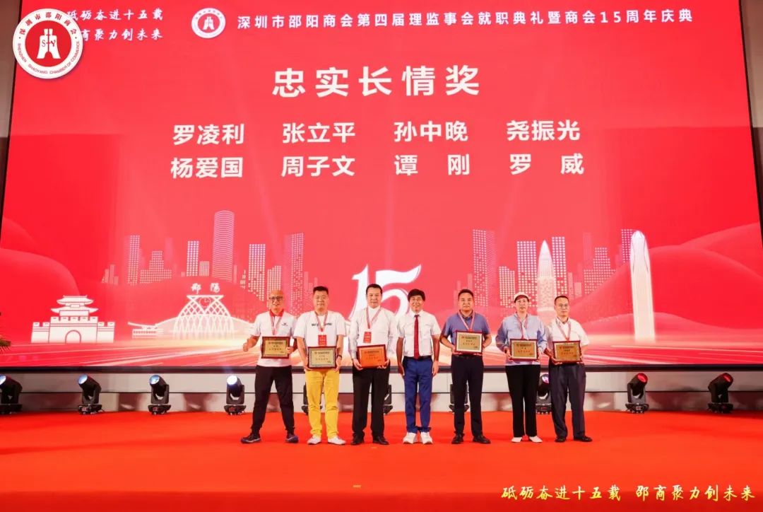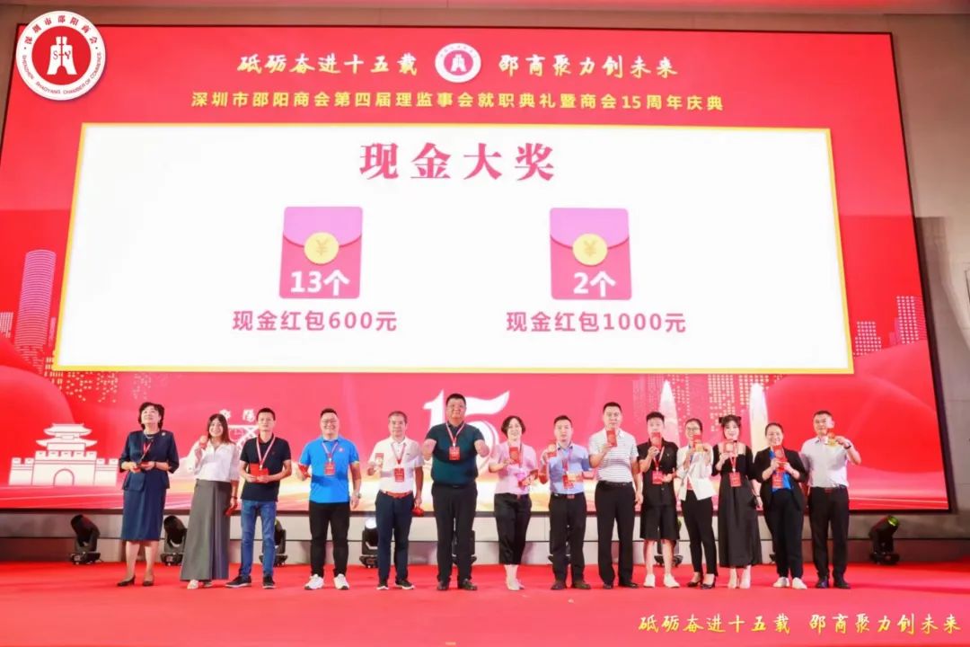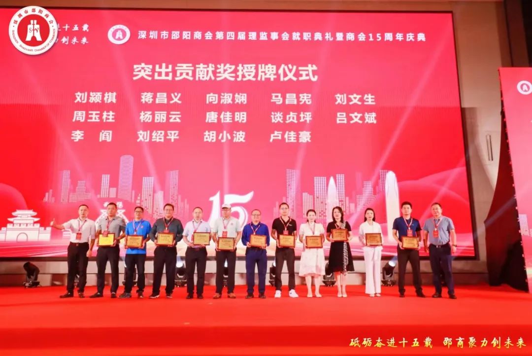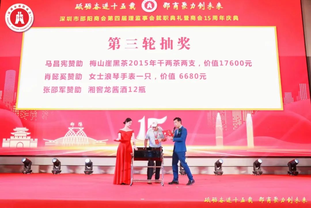 砥砺奋进十五载、邵商聚力创未来!深圳市邵阳商会第三届会长张红学,以及第四届当选会长刘世梁、执行会长张邵军、监事长曾常青率领第四届商会班子成员、理事会、监事会、会员及嘉宾600余人参加庆典。出席本次大会的嘉宾有深圳大学校长毛军发、原邵阳市委书记黄天锡、原深圳市委常委警备区政委曹绍业、湖南省驻深圳办事处副主任李永东、邵阳市政府副秘书长李荣卫、原湘潭市委常委陈云龙、湖南省驻深圳办事处李志远处长、原深圳市接待处处长李忠平、上海交通大学深圳研究院院长刘河洲、中华邵商联合会秘书长卿前平、深圳市湖南商会会长梁白苹、福建省湖南邵阳商会会长蒋太柏、郑州市邵阳商会会长陈贵雄、广东省湖南邵阳商会会长颜盛繁、肇庆市邵阳商会会长李海田、珠海市邵阳商会会长刘云德、惠州市邵阳商会会长谢清水、邵阳学院深圳校友会会长万祖军、江门市邵阳商会执行会长潘显军、珠海市邵阳商会创会会长曾小津等共同见证商会迈向新征程。