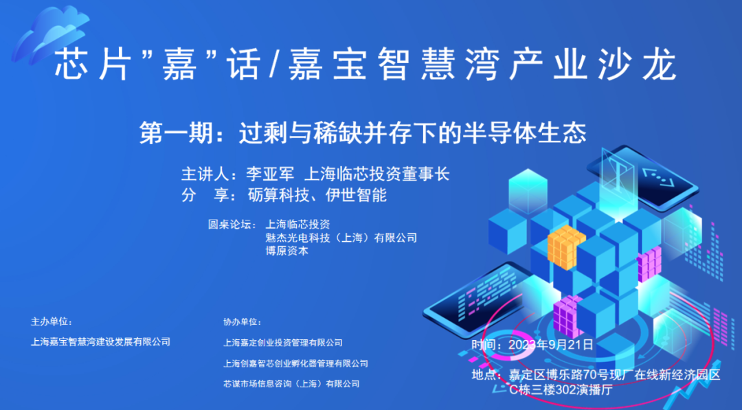| 芯动嘉境,车享未来2023年9月21日(周四)下午14:30,由上海嘉宝智慧湾建设发展有限公司主办,上海嘉定创业投资管理有限公司、上海创嘉智芯创业孵化器管理有限公司、芯谋研究协办的第一期芯片“嘉”话暨嘉宝智慧湾产业沙龙活动将在上海·嘉定区博乐路70号现厂在线新经济园区C栋三楼302演播厅举行。