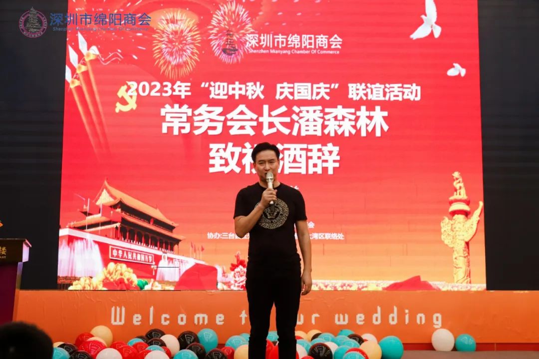 常务会长潘森林先生讲道:“人有喜怒哀乐,月有阴晴圆缺。我们希望彼此长寿安康,以便分享这优美的月光,即使我们相隔万里。”它恰如其分地反映了中秋节的意义,人们对满月的期待和对相思之人的关心。以中秋节的圆月作为人们团聚的象征,作为寄托,思念家乡和亲人,祈求丰收和幸福。在此深圳市绵阳商会家人团聚的重要时刻,我隆重邀请商会的领导层共同上台来,一起为全体的会员及家属共同举杯。