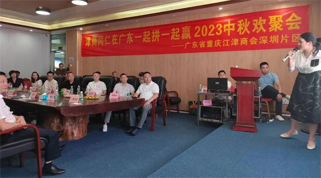 广东省重庆江津商会深圳片区团拜会于9月16日下午在深圳片区联络处举行。重庆市人民政府驻广东省办事处副主任张正华、处长黄毅,秘书长樊坚勇,名誉会长戴玉均、刘金橦、郑富红,深圳片区执行会长李德纯、广州东片区执行会长龙作彬、东莞东片区执行会长刘坤全,副执行会长施龙胜、岳俊,常务副会长周宏、谢文岚,副会长黄贻祥、胡勇旭、陈英等,共计有七十多位领导及企业家参加,活动由常务副会长周宏主持。