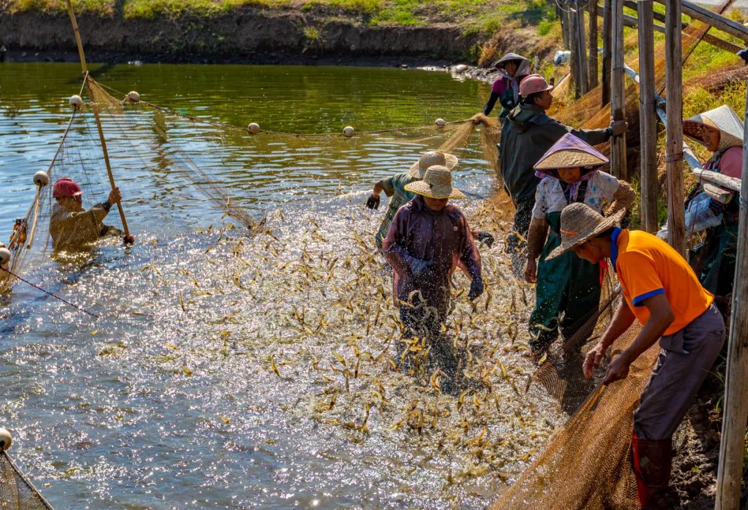 大鳌镇丰秋水产负责人黄剑秋是新联村对虾党支部的致富能手,他积极发挥党员先锋模范作用,成立水产专业合作社,承包600多亩的虾塘,并与周边20多个村民合作养殖,除了提供技术指导,他还为村民打通销售渠道,解决村民养殖销售的“后顾之忧”。如今他的养殖产业布局已向多方面进行延伸,经营业务涉及虾苗、饲料、运输等,成为大鳌镇对虾养殖业“领军者”之一。