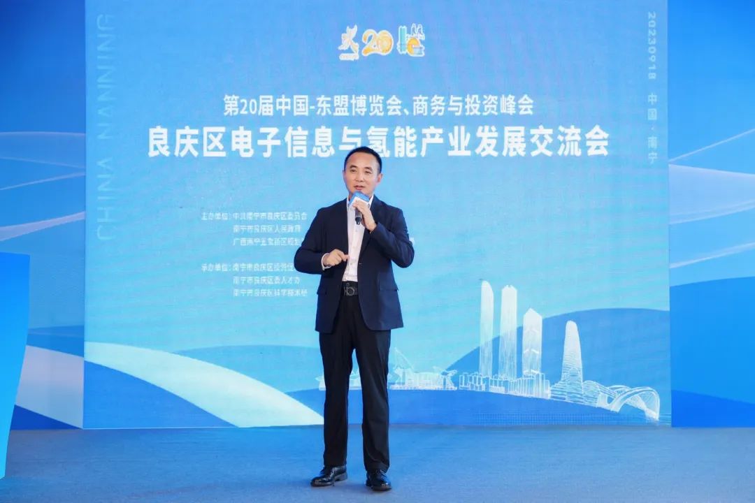 上海博氢新能源科技有限公司董事长沈建跃博士发表“氢能发展愿景与未来”主题讲话。他表示,良庆区在氢能产业发展上潜力巨大,博氢新能源公司与良庆区人民政府签下合作框架协议,优势互补、共谋发展。项目总投资约90亿元人民币。