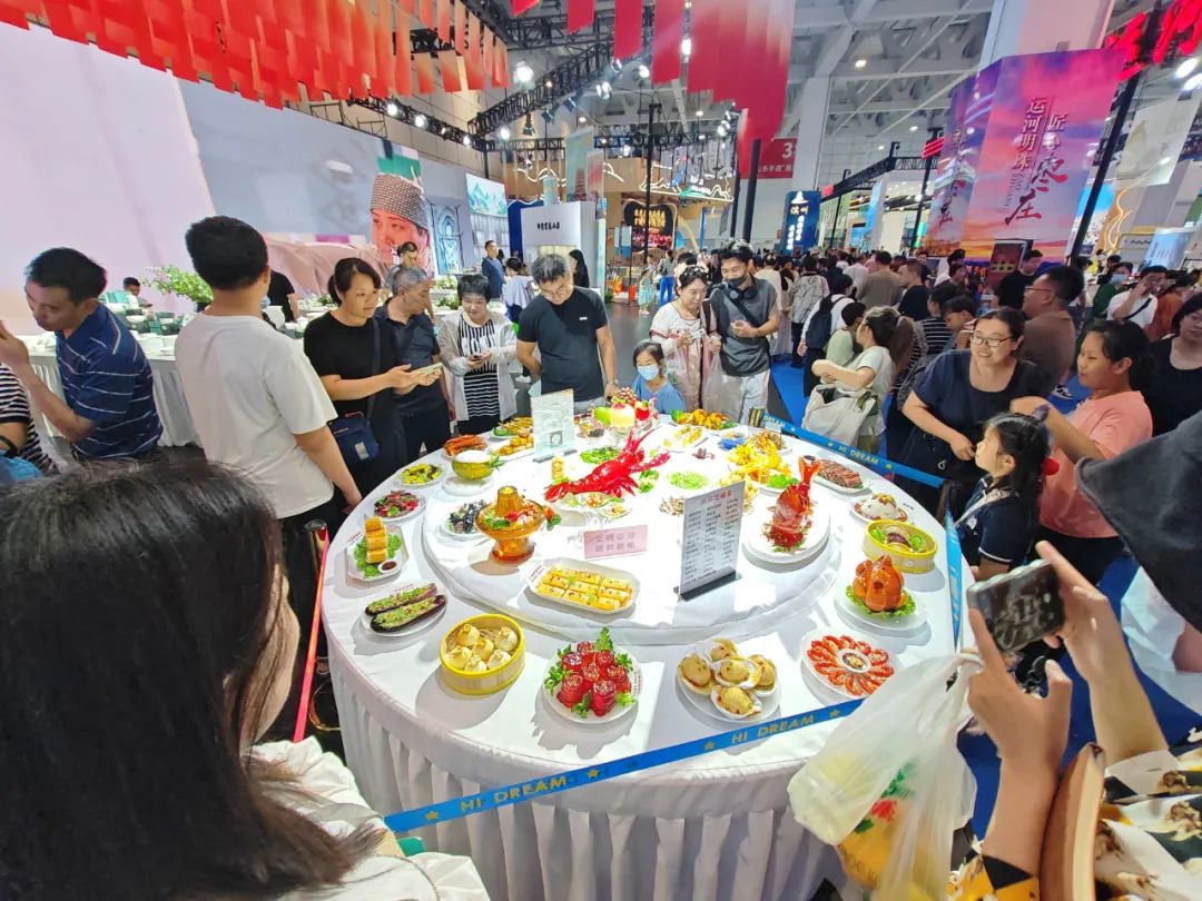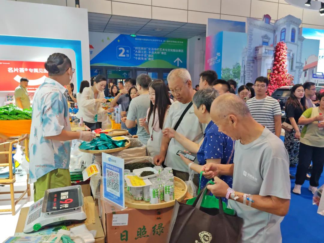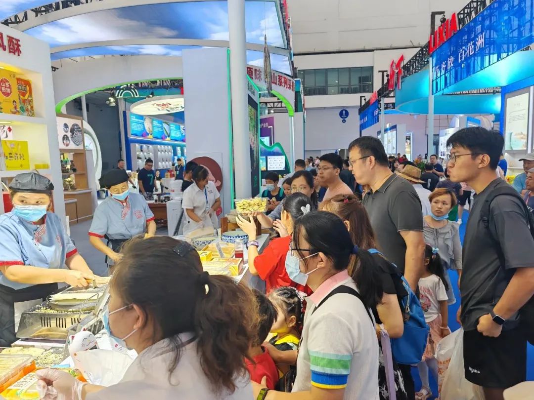 此外,新疆喀什地区每天带来精彩的舞蹈,引得观众里三层、外三层围观欣赏;南部山区展位现场支起煎饼摊,点燃浓浓的烟火气;中国诗词大会文创推出的打卡体验活动,成为整个场馆的人气焦点……