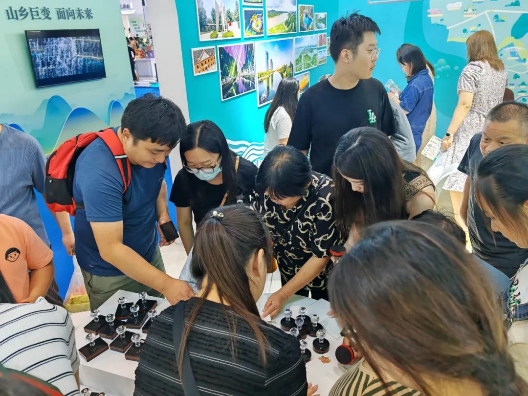 集章打卡作为当下年轻人流行的逛展方式,文旅博览会上怎能没有?河南博物院、威海、阡陌书店等多个展位展台为观众准备了丰富的印章,将各地的标志性景点、文化符号、城市名片等融入印章设计中,吸引年轻观众排队集章,将文化品牌“带回家”。