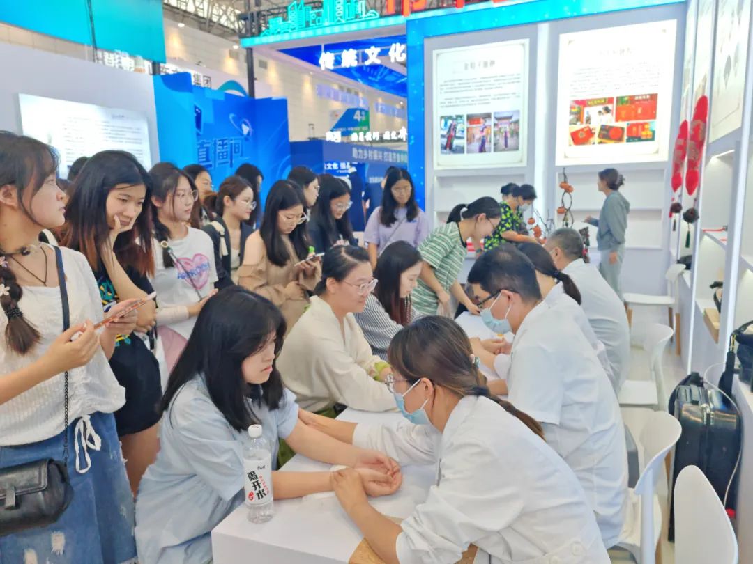 谁能想到在文旅博览会上有一种逛展方式叫排队脉诊呢?在4号馆,等待“叫号”的年轻人排起多个长队,原来是省级非遗项目扁鹊脉学诊法展台在为观众免费脉诊!脉诊技术在我国传承了2000多年,发源地就在山东,创始人就是济南长清人扁鹊。