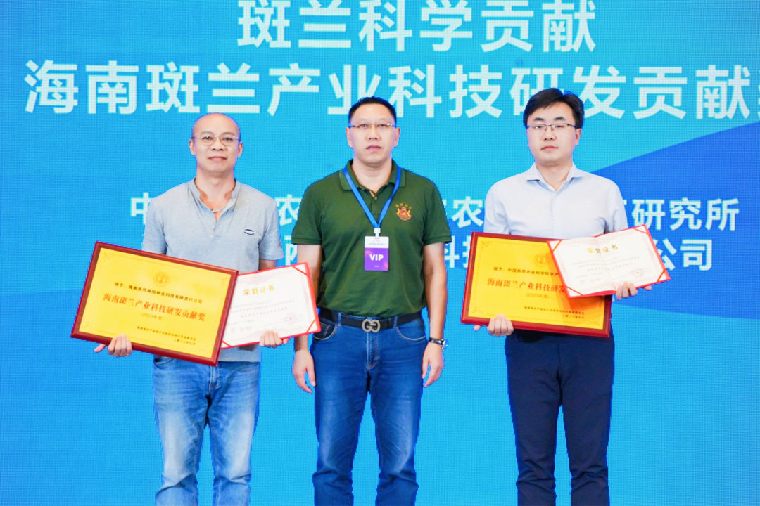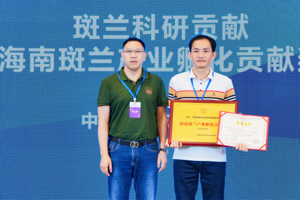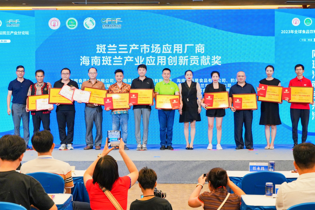 为表彰各科研机构及企业为斑兰产业前期发展所做出的贡献,斑兰专业委员会特为各领域优秀代表颁发了“斑兰产业发展促进贡献奖”。来自斑兰产业的科研、政府、斑兰种植、斑兰加工、斑兰食品等23家单位与企业分别荣获了“海南斑兰产业孵化贡献奖”“海南斑兰产业科技研发贡献奖”“海南斑兰产业种植促进贡献奖”“海南斑兰产业加工促进贡献奖”“海南斑兰产业应用创新贡献奖”五大奖项。鼓励各相关企业再接再厉,为斑兰产业发展继续贡献力量,做出更大的成绩。