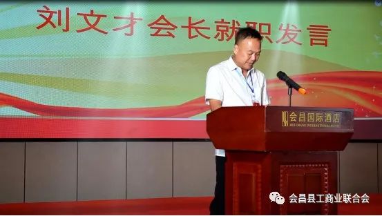新当选会长刘文才作就职发言,他代表商会新一届领导班子通过强化会员思想教育,做好会员的思想引领;提升服务商会水平,为会员和会员企业办实事、好事;用制度保障商会规范化、制度化运行等措施为抓手,努力推动商会以创建全国“四好”商会为目标而奋斗!