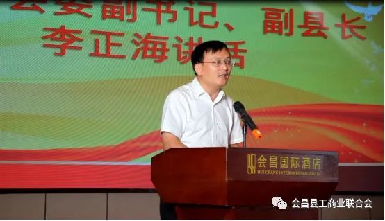 会昌县委副书记、副县长李正海同志代表会昌县委、会昌县政府向商会三届一次会员大会的胜利召开表示热烈的祝贺,并对新一届商会工作提几点希望:要坚持政治建会,加强政治引领。新一届领导班子要始终坚持党的领导,结合学习贯彻习近平新时代中国特色社会主义思想主题教育,认真学习宣传贯彻党的二十大精神,持续加强对会员的党的创新理论学习教育和理想信念教育,引导会员积极支持服务党委、政府工作,使企业自身发展与会昌高质量发展“同频共振”。要广搭平台,构建沟通桥梁。新一届领导班子要以全国“四好”商会为目标,积极搭建会员与政府沟通平台,积极向商会会员宣传党的大政方针和政府重要决策,做好上情下达、下情上传的沟通工作;要积极引导会员做到守法经营,诚信经营,鼓励会员企业继续投资会昌、建设会昌,在加快会昌经济社会高质量发展作出应有贡献。要强化服务,开创商会新局面。新一届领导班子要在服务会员上下功夫,不断提升商会服务会员的能力和本领,用优质的服务来团结会员、凝聚人心,赢得广大会员对商会组织的认同感和归属感;要加强与其他兄弟商会的横向联系,加强兄弟商会的学习交流,增进商会之间的合作,不断开创商会工作新局面。要投身光彩事业,勇担社会责任。要发挥组织功能,在积极引导会员及会员企业在参与“万企兴万村”行动、扶危助残、爱心公益等光彩事业上发挥主动性,使广大会员真正成为在政治上有地位、事业上有作为、社会上有荣誉的优秀中国特色社会主义事业建设者。