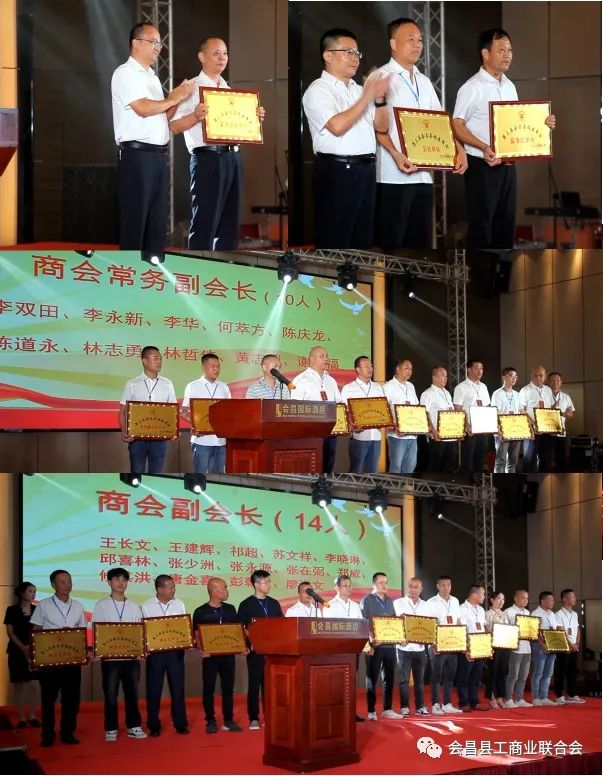 庆典还举行授牌仪式,县领导陈斐、曾兴忠同志为商会新一届领导班子授牌。商会会长刘文才为商会常务副会长授牌;商会监事长苏金魁为商会副会长授牌。