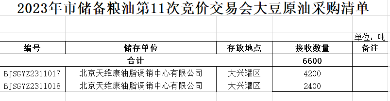 2023年北京市储备粮油第十一次竞价交易会交易清单