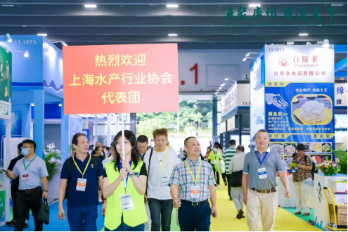 2023年9月15日-17日,第九届广州国际渔业博览会在广交会展馆隆重开幕。上海水产行业协会常务副会长王成、上海海之兴进出口贸易有限公司董事长,协会副会长陈光伟、上海泽鲜水产品有限公司董事长、协会副会长,冻品冷链分会会长余建华、协会秘书长吴常产、协会海味干果分会秘书长汤宝龙等10位同志应邀组团参加第九届广州国际渔业博览会及9月15日上午的开幕式。 第九届广州国际渔业博览会由广东省农业技术推广中心、广州市农业农村局指导,中国水产流通与加工协会、广东省水产流通与加工协会主办。广州环球搏毅展览有限公司承办。 2023年9月15日上午,中国水产流通与加工协会会长崔和、阳江市政府副市长关天表、中国水产科学研究院南海水产研究所副所长吴洽儿、广东省乡村振兴促进会会长陈文、广东省农业技术推广中心党委专职副书记刘胜敏及省内外农业农村厅(局)主要负责同志和协会、企业、各国驻穗代表约200人出席开幕式,现场气氛火热。舟山国家远洋渔业基地推介——浙江舟山农产品贸易中心有限公司总经理张鑫中国会展经济研究会副会长、广东省会展标准化技术委员会主任、