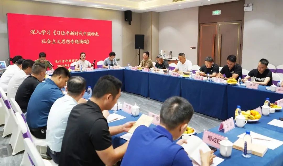 根据《池州青年徽商商会章程》的规定,商会第一届理事会任期即将届满。为保证我会平稳有序地做好换届工作,更好地发挥商会平台的作用,提升凝聚力和影响力,9月18日下午,我会召开了换届筹备工作座谈交流会。池州青年徽商商会常务副会长兼秘书长江夏,副会长兼副秘书长汪开乐、吴宗龙,副秘书长郑雪莉,党支部书记方盛军,理事董耀棠、檀劲松、李善龙、汪金根、刘亮,会员吴刚、刘滔、金一亮、吴伟、余江、谢佐宇、徐宁同、檀成钰、董恒、张冉、丁爱芬、苏敏锐、张斌参加了会议。会议由商会常务副会长兼秘书长江夏主持。会上,首先为我会支部党员同志每人赠送了《习近平著作选读》第一卷、第二卷、《习近平新时代中国特色社会主义思想学习纲要》以及《中国共产党章程》。随后,党支部书记方盛军节选了《习近平新时代中国特色社会主义思想专题摘编》和《习近平新时代中国特色社会主义思想学习纲要(2023年版)》书中的部分内容进行了通读领学,与会人员边学习、边思考,既深化了认识又更加坚定了理想信念。