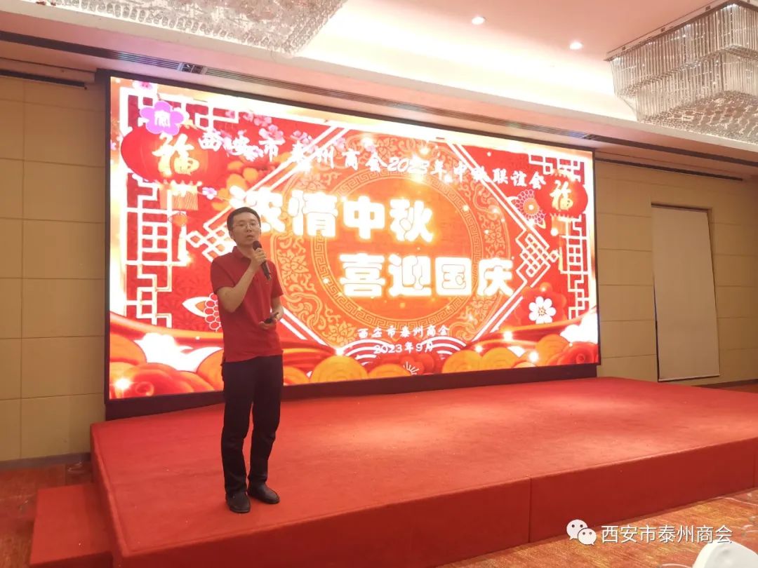 9月17日下午,我商会在我会员企业玉祥门南方酒店成功召开了第三届三次理事会暨2023中秋联谊会。江苏省人民政府驻西北办事处建管处处长、江苏省住建厅驻西北办事处主任韩劲松,江苏省政府驻西北办处长左学兵,陕西省人大人事委原副主任何物华,陕西省司法厅原副厅长陈忠槐,西安市应急管理局原副局长赵华德,西安市扬州商会顾问朱恒青,省建筑商会办公室主任季克明以及我商会会员80余人参加了本次活动。