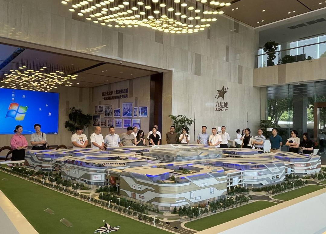 大家先后参观了九星村史馆和九星城营销中心,听取九星改革发展和转型改造相关情况介绍,详实的照片和还原模型让大家了解了九星几十年来“以市兴村 强村富民”的发展历程,感受到九星集体经济发展带来的沧桑巨变。在九星城营销中心,大家观摩九星城项目沙盘模型,观看九星城宣传片,九星城项目的产业特色、服务功能、生态环境给大家留下深刻印象。