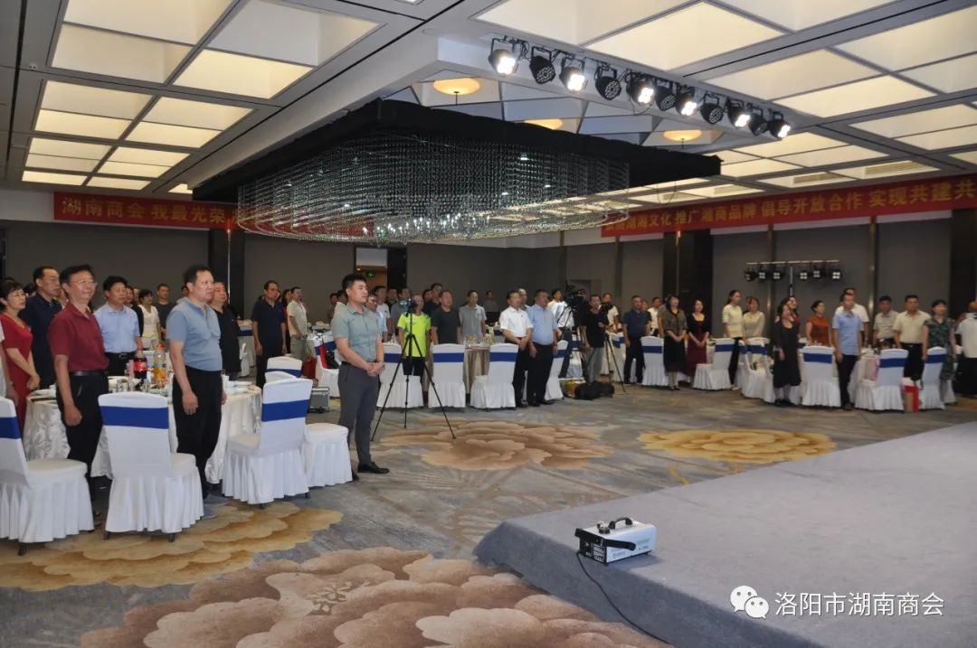 全体起立,在庄严肃穆、回声嘹亮的国歌声中,洛阳市湖南商会第一届五次会员大会拉开帷幕。
